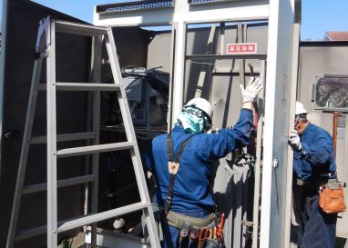 高圧電気設備工事1 高圧ケーブル張替 キュービクルトランス交換 高圧電気設備工事2 保護リレー試験・耐圧試験 その他 キュービクル新設 太陽光設備増設に伴うキュービクル改造 高圧設備更新 柱上高圧負荷開閉器(PAS)交換 トランスオイル交換 低圧化